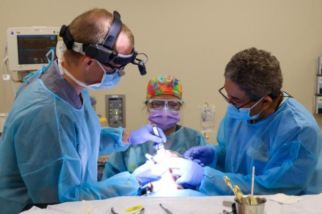 At least one-half day per week is designated for the chief resident and third-year residents to see pre-op implant patients and perform implant placement, sinus lift procedures, and soft and hard tissue preprosthetic operations. This dedicated time ensures that each resident can follow their implant patients all the way from consultation to surgery to restoration. A faculty member with advanced implant experience supervises this clinic and provides expertise in implants.